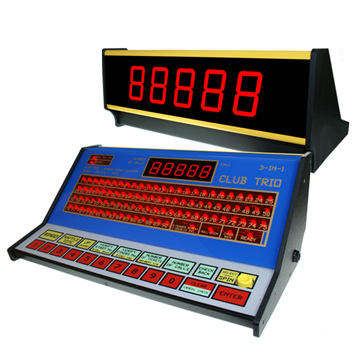 The CLUB TRIO generates up to 5 digit numbers from 1 to 99,999 for the Bingo, Raffle and Tote games. A random number is generated when the SELECT button is pressed. That number will not be drawn again in that game. The number currently called is shown to the audience by large, easy to read digits on the audience panel. That same number is also shown on the caller’s panel to be read and announced by the caller.